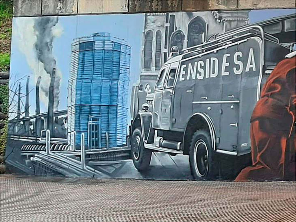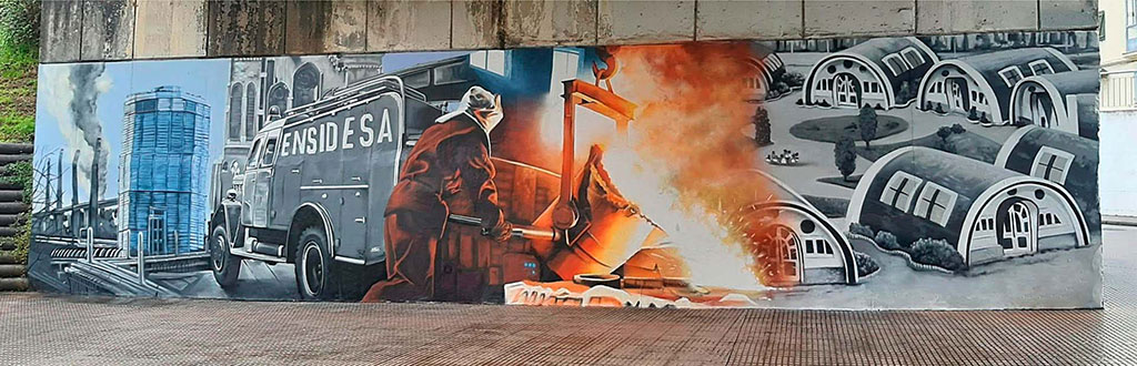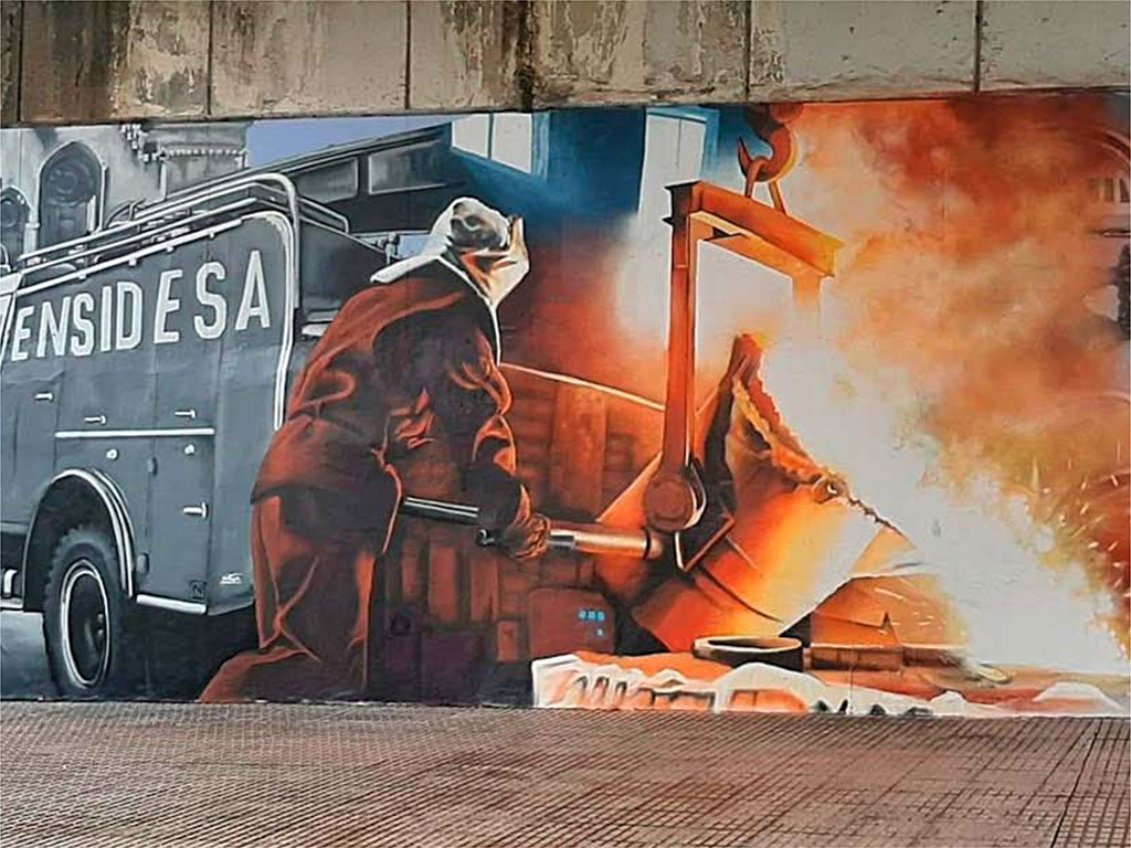 Plasmamos sobre las paredes la esencia de la histórica empresa siderúrgica asturiana.