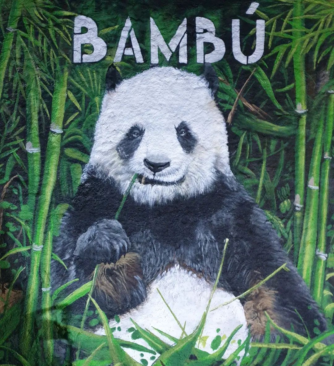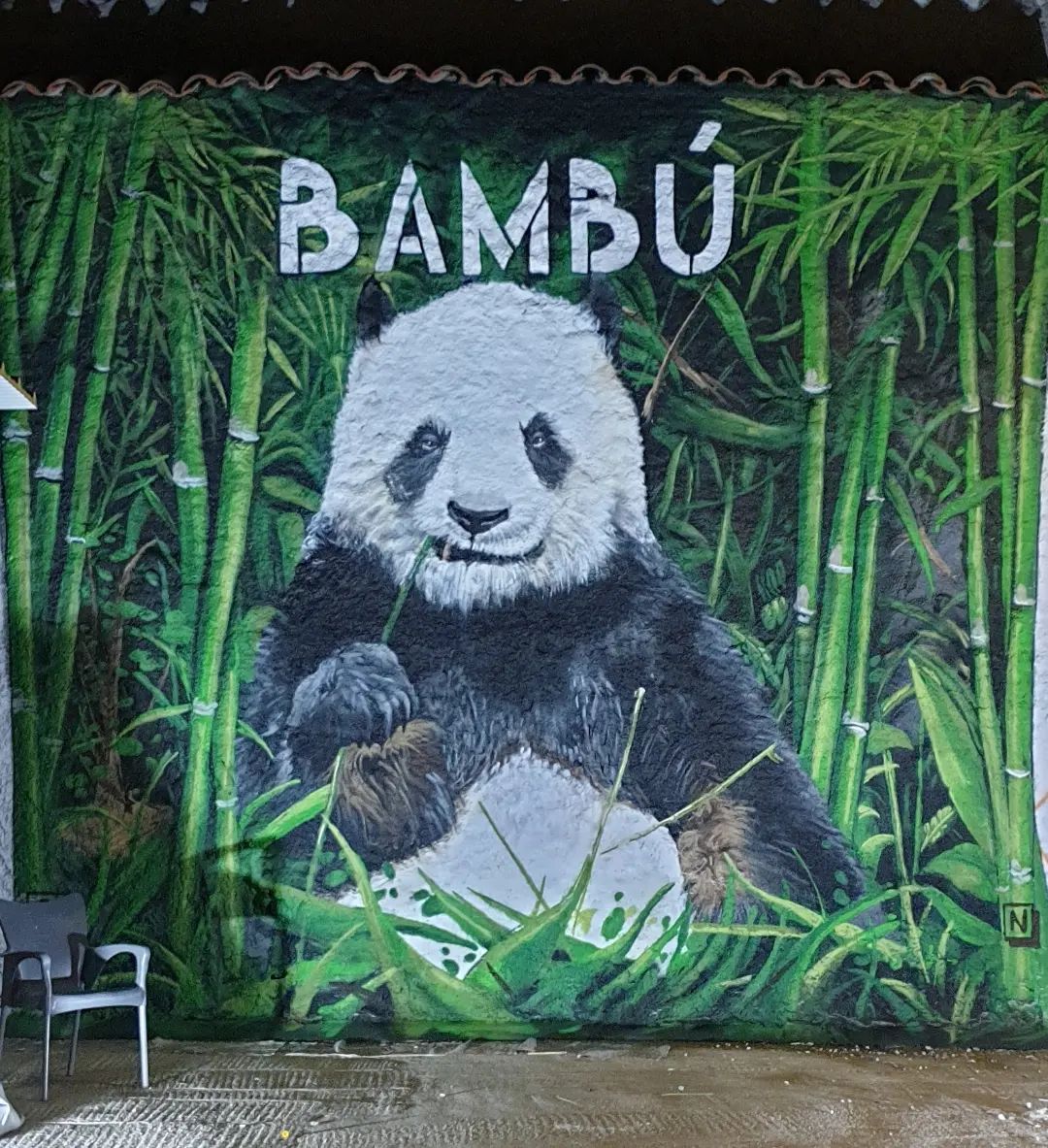 Un panda ultrarrealista te estará observando mientras te tomas algo en la terraza del local.
