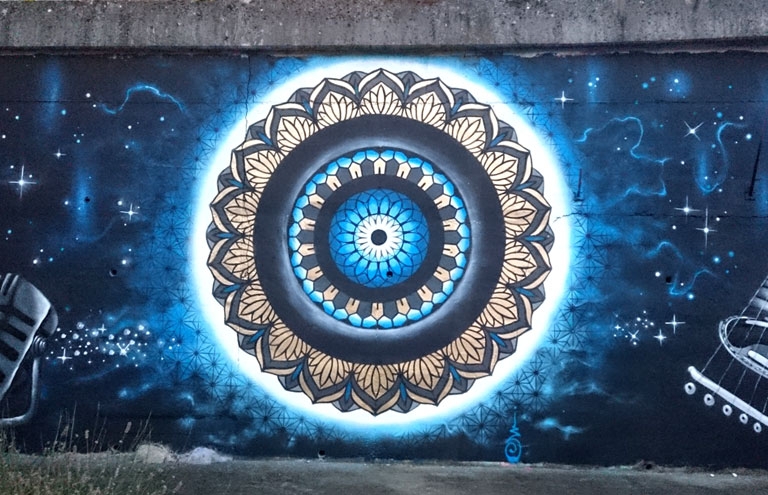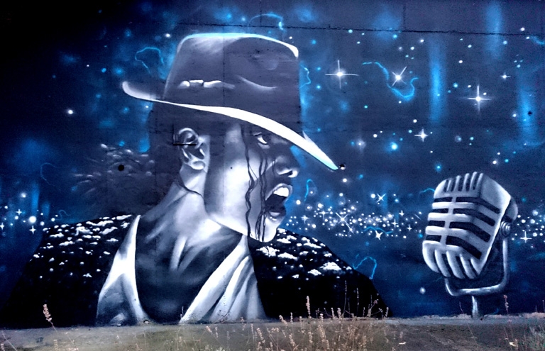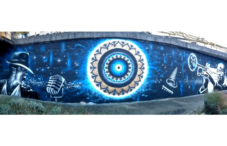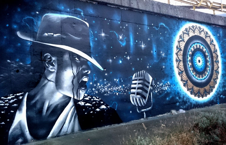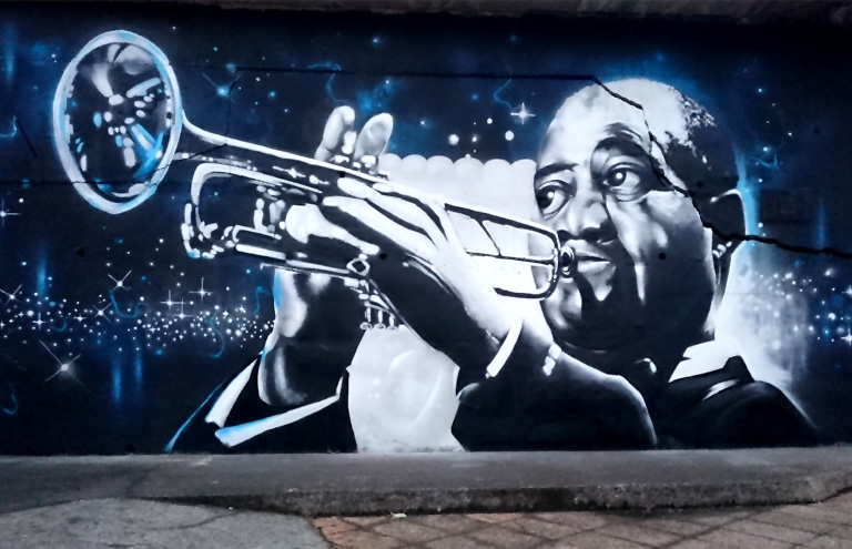Louis Armstrong y Michael Jackson comparten escena en este espectacular graffiti en la localidad de Cangas.