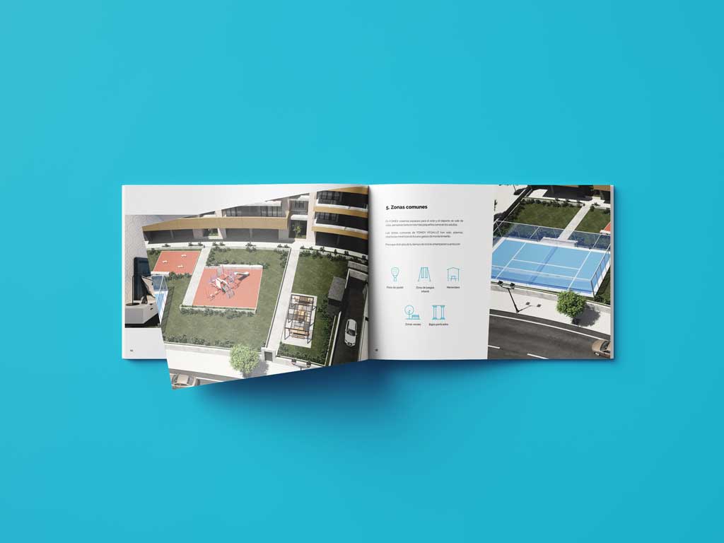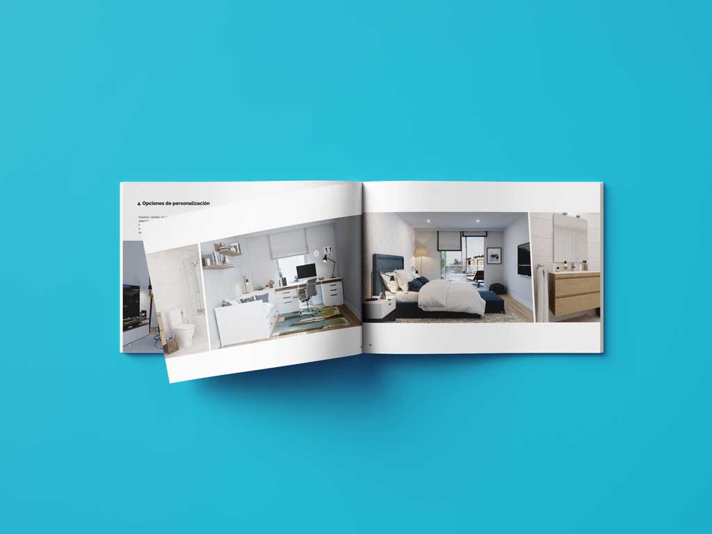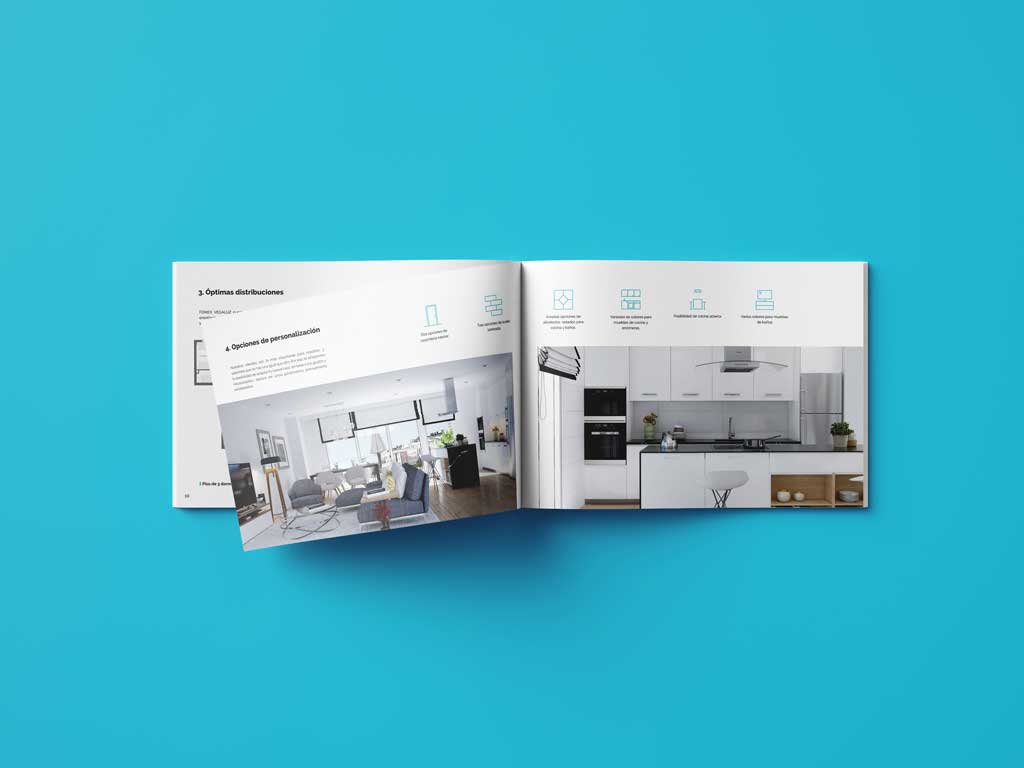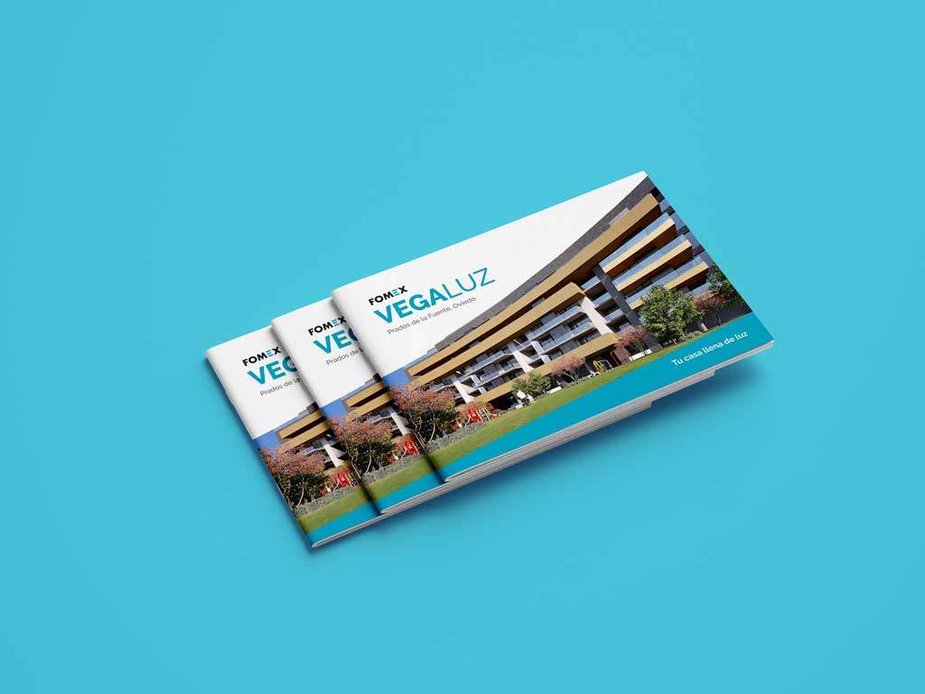 Maquetación de catálogo publicitario para FOMEX, una constructora inmobiliaria en Oviedo, Asturias.